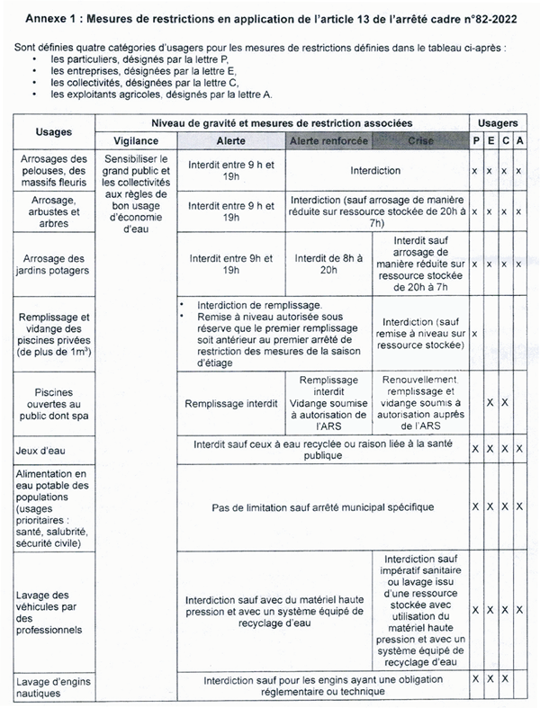 Depuis le 24 juillet, notre secteur était en alerte sécheresse, puis le 23 août en alerte renforcée. Ces restrictions sur l'usage de l'eau sont levées par la préfecture depuis le 15 octobre. Malgré la situation plutôt favorable cette année, le Préfet attire l'attention de tous les usagers sur la nécessité d'adopter toute l'année un usage économe pour préserver de façon durable la ressource en eau.