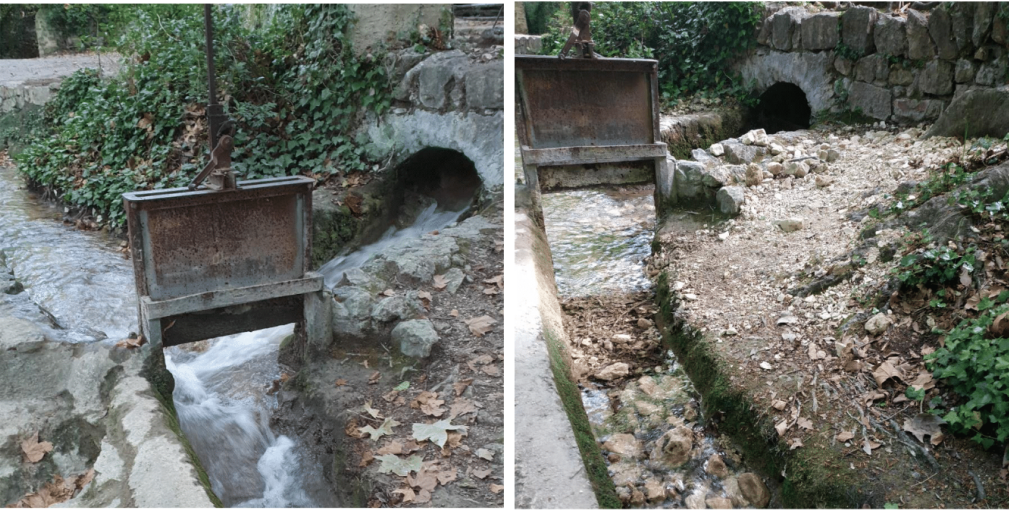 Malgré le niveau d'eau inquiétant à la source et l'alerte sécheresse, les aygadières continuent l'entretien et le nettoyage du réseau d'adduction d'eau. Nous poursuivons également les travaux entrepris pour maintenir le canal en état, en particulier le remplacement de martelières défectueuses.