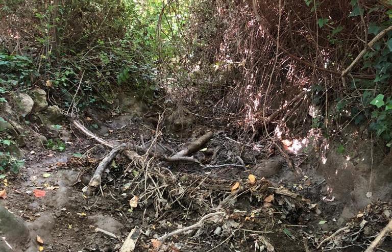 De nombreux obstacles dans le Fauge ont empêché le peu d'eau de couler cet été. Un grand merci aux volontaires qui ont profité de son lit à sec pour commencer un gros nettoyage après le Parc de st-Pons. Ils ont retiré des troncs d'arbre, des branchages, arraché des ronces et broussailles... Il reste encore du travail, une autre journée de débroussaillage va être organisée début septembre, avant que l'eau ne se remette à couler.
