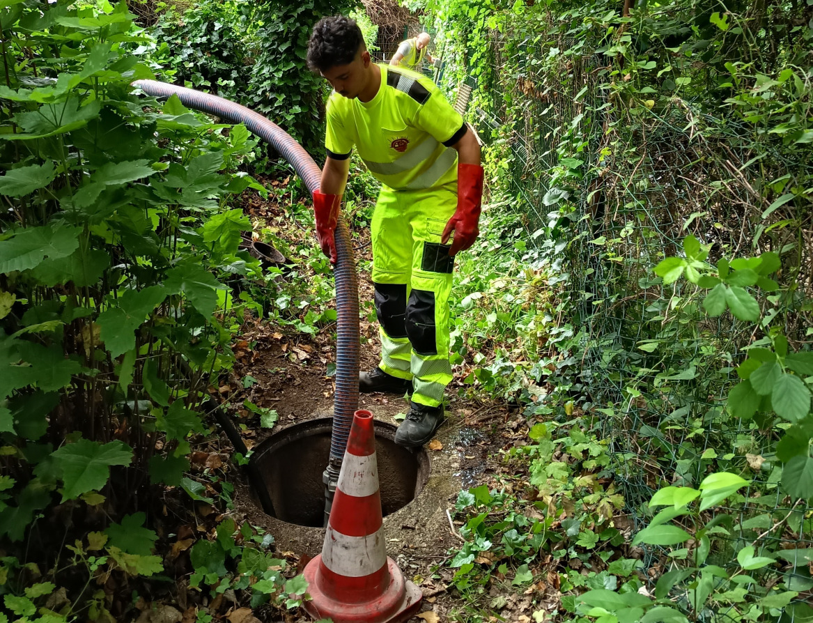 Un gros nettoyage du canal a dû être effectué au préalable pour que toutes les feuilles accumulées ne créent pas des bouchons et ensuite des inondations. Une surveillance et un entretien réguliers sont maintenant nécessaires pour garantir le bon écoulement de l'eau.